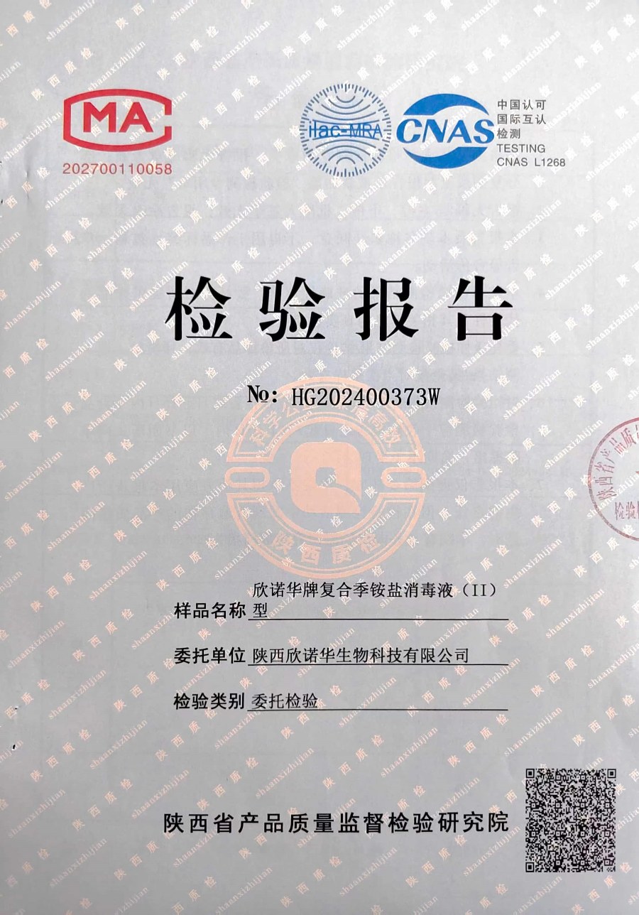 欣諾華牌復(fù)合季銨鹽消毒液檢測報(bào)告(2024年度)-陜西欣諾華生物科技有限公司