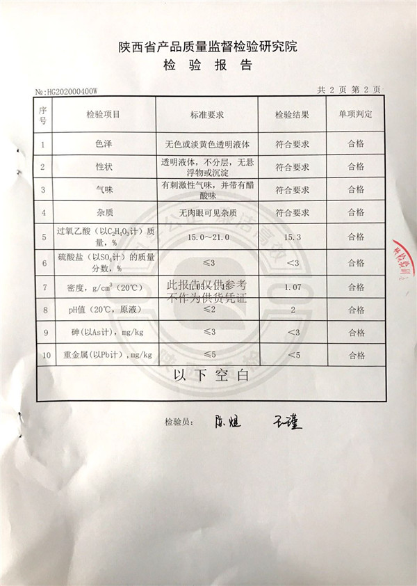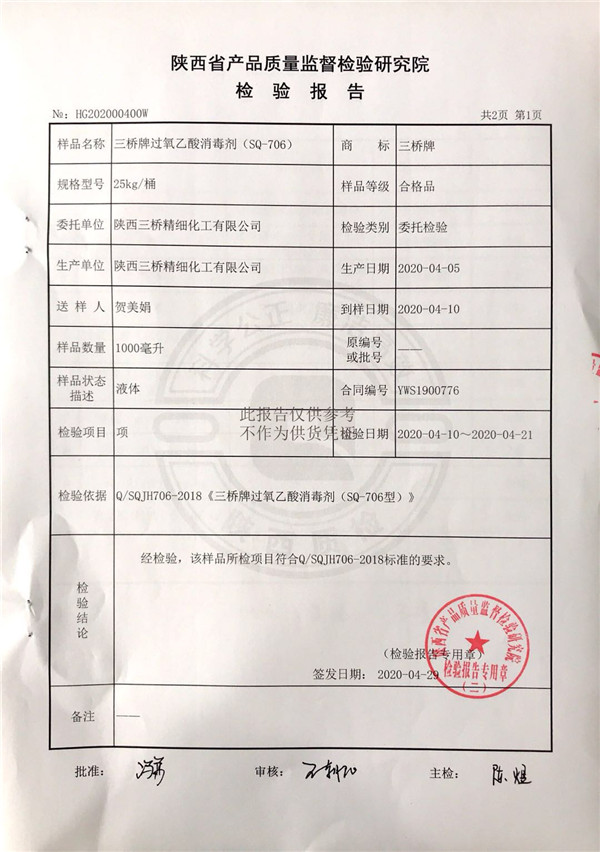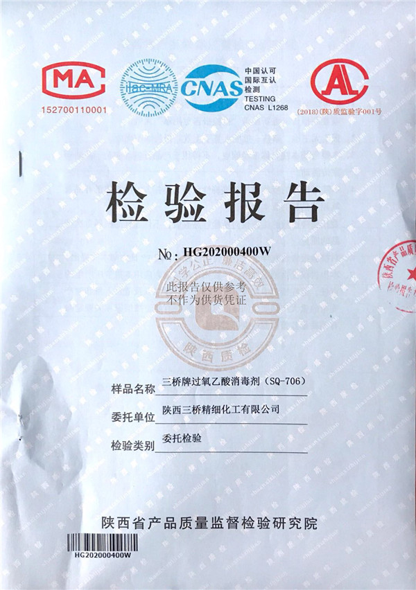 三橋牌過(guò)氧乙酸消毒劑(SQ-706型)檢測(cè)報(bào)告