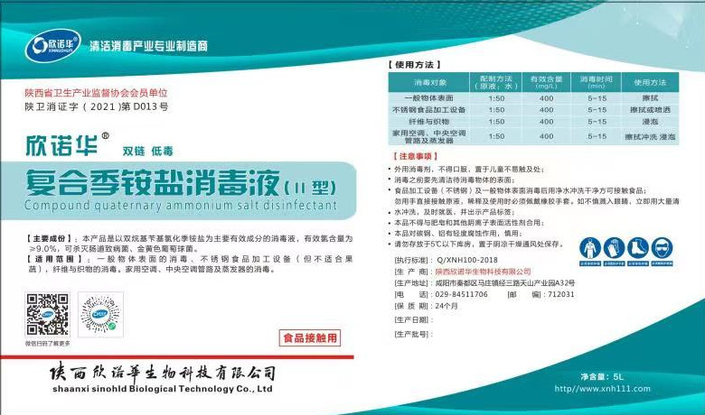 雙鏈季銨鹽消毒液欣諾華牌復合季銨鹽消毒液使用說明書