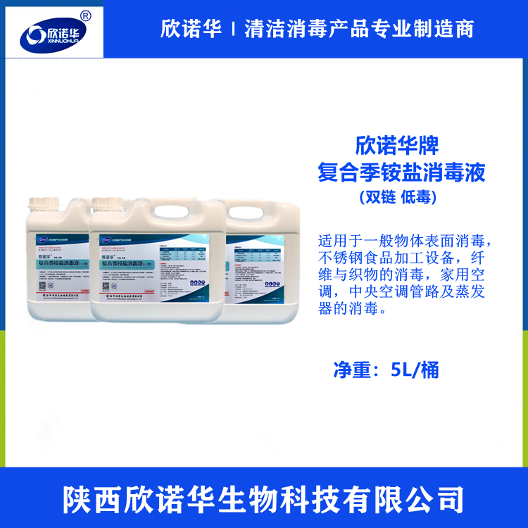 產品簡介: 欣諾華牌復合季銨鹽消毒液屬于第四代雙鏈季銨鹽消毒液,具有無色,無明顯氣味,中性,對呼吸道和皮膚無刺激,清潔消毒同時完成,保質期長,運輸不受管制,使用方便的特點,本品為中效消毒劑,允許應用于食品,醫(yī)療,家庭等行業(yè)的消毒。