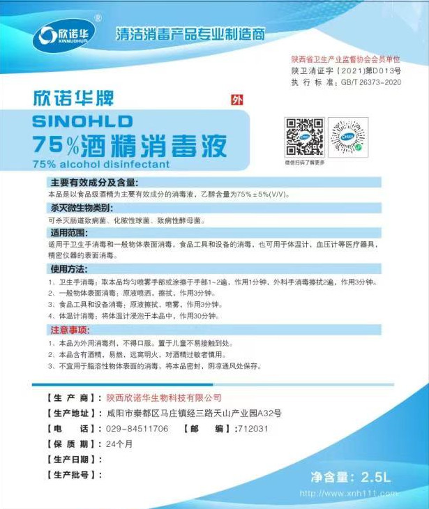 陜西欣諾華生物科技有限公司是醫(yī)用酒精生產(chǎn)廠(chǎng)家,衛(wèi)生許可證號(hào) 陜衛(wèi)消證字(2021)第D013號(hào) 主要生產(chǎn)欣諾華牌75%酒精消毒液,免洗手消毒液,免洗手消毒凝膠等產(chǎn)品 生產(chǎn)企業(yè)地址電話(huà) 咸陽(yáng)市秦都區(qū)馬莊鎮(zhèn)經(jīng)三路天山產(chǎn)業(yè)園A32號(hào) 029-84511706 ,公司于2020年喬遷新址,并于同年相繼獲得食品相關(guān)產(chǎn)品全國(guó)工業(yè)品生產(chǎn)許可證(食品用洗滌劑A類(lèi),B類(lèi)),生產(chǎn)許可證號(hào):陜XK16-114-000502016),消毒產(chǎn)品衛(wèi)生許可證,證號(hào): 陜衛(wèi)消證字第D013號(hào),消毒劑類(lèi) (液體 粉劑 片劑)消毒劑(液體 凝膠)(凈化),是陜西省首批獲得雙認(rèn)證的企業(yè),新增醫(yī)用消毒產(chǎn)品涵蓋皮膚黏膜消毒劑,欣諾華牌免洗手消毒液,欣諾華牌免洗手消毒凝膠,欣諾華牌75%酒精消毒液,環(huán)境物表消毒系列:欣諾華牌含氯消毒粉,欣諾華牌84消毒液,欣諾華牌含氯消毒片,欣諾華牌二氧化氯消毒粉。欣諾華牌二氧化氯消毒片,欣諾華牌二氧化氯消毒液,欣諾華牌過(guò)氧化氫消毒液,欣諾華牌過(guò)氧化氫銀離子消毒液產(chǎn)品,原有產(chǎn)品欣諾華牌食品工業(yè)次氯酸鈉消毒劑,欣諾華牌次氯酸鈉消毒液(血透機(jī)專(zhuān)用),欣諾華牌鄰苯二甲醛消毒液,欣諾華牌復(fù)合季銨鹽消毒液 三橋牌過(guò)氧乙酸消毒劑,三橋牌食品工業(yè)酸性清洗劑,三橋牌食品工業(yè)堿性清洗劑,三橋牌食品用酸性洗滌劑,三橋牌食品用堿性洗滌劑,三橋牌牧場(chǎng)酸堿清洗劑等,公司現(xiàn)有產(chǎn)品二十余種。歡迎新老客戶(hù)光臨指導(dǎo)!