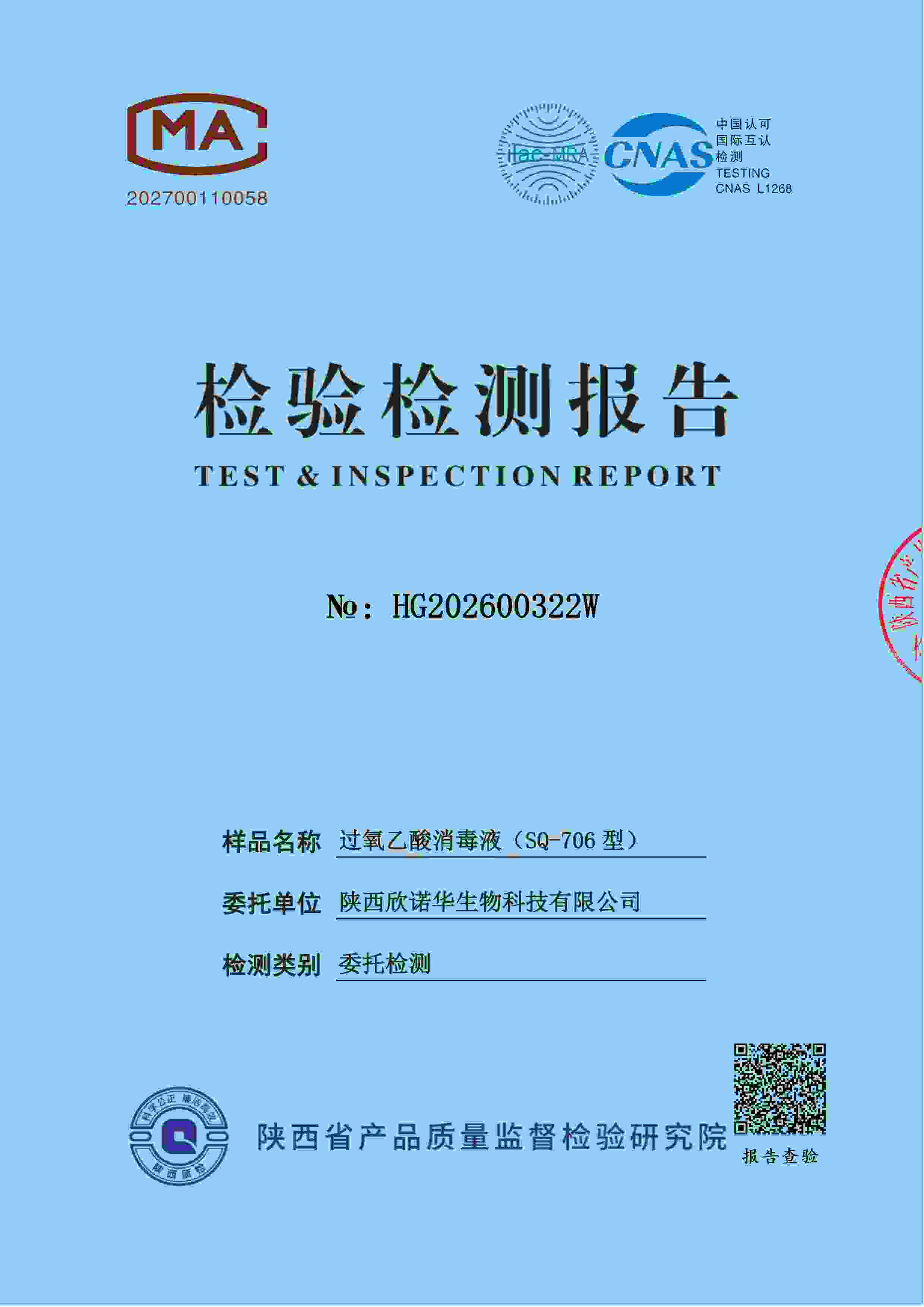 三橋牌過氧乙酸消毒液檢測(cè)報(bào)告(2026年度)-陜西欣諾華生物科技有限公司