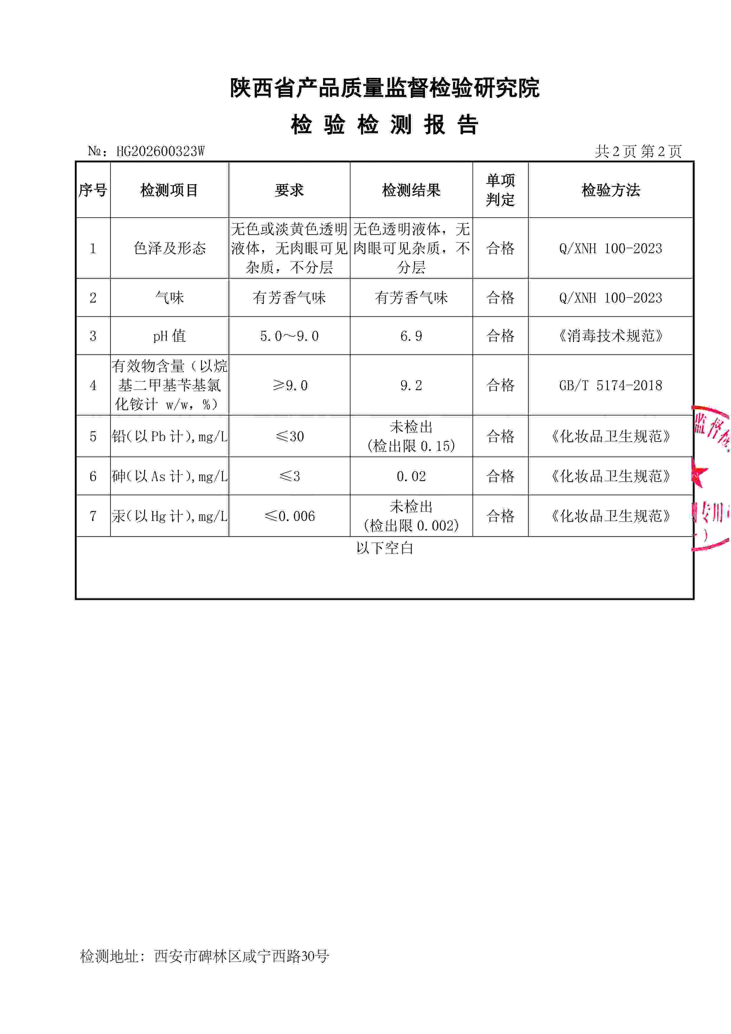 復(fù)合季銨鹽消毒液檢測(cè)報(bào)告(2026年度)